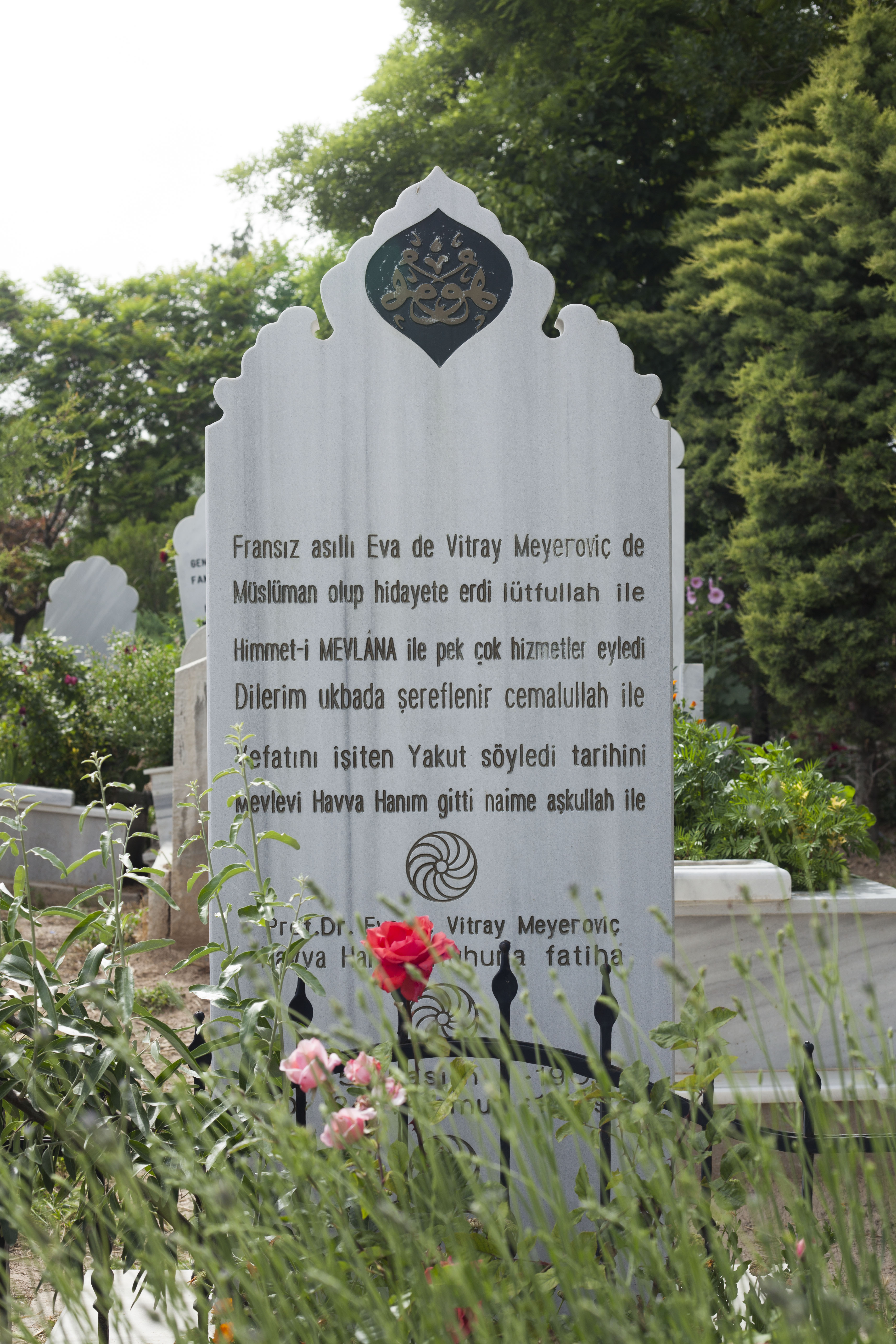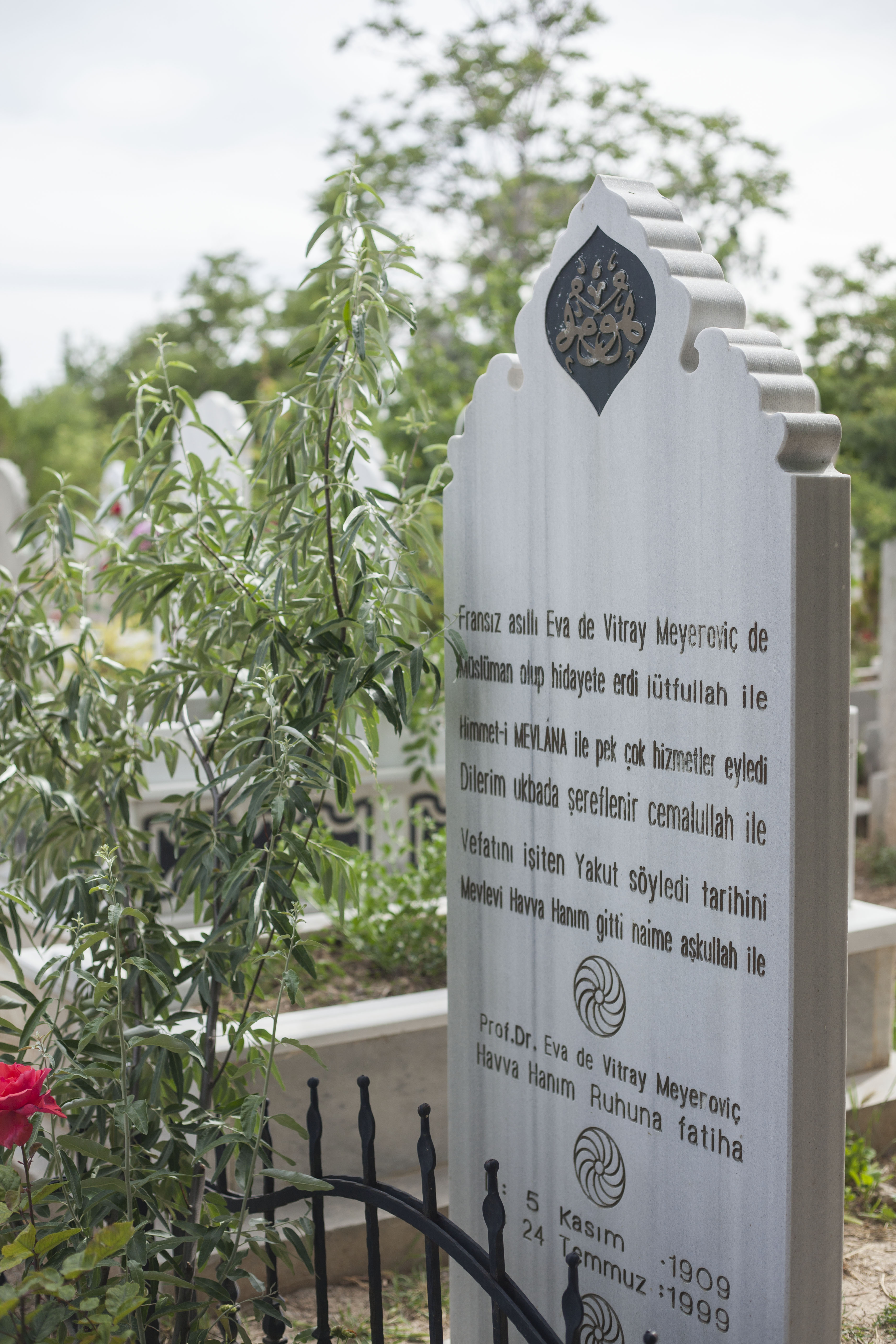 Eva Hanım’ın mezarını ziyaret etmek isteyenler için. Mevlana Türbesi yanındaki Üçler Mezarlığı’nın Şehitlik tarafında Hacı Veyis Camisi’nin yanındaki kapıdan girip sağa doğru ilk yoldan 100 metre kadar ilerleyince sol tarafta görebilirsiniz.
