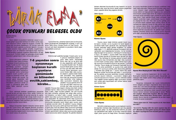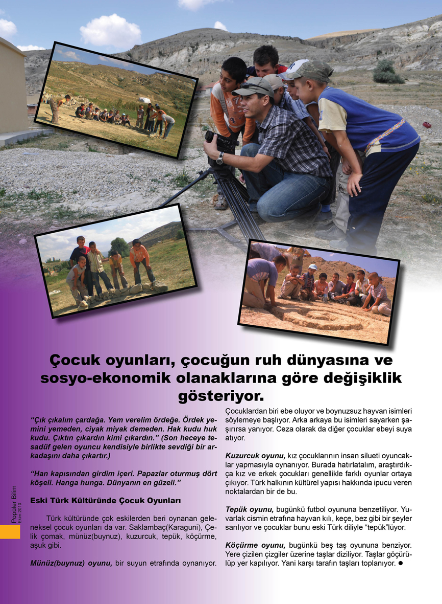 Belgeselde geleneksel çocuk oyunlarından yılan, kümes, keloğlan ( harman biç ) oyunlarının nasıl oynandığını müdahale etmeden, doğallığıyla yansıtmaya çalıştık.