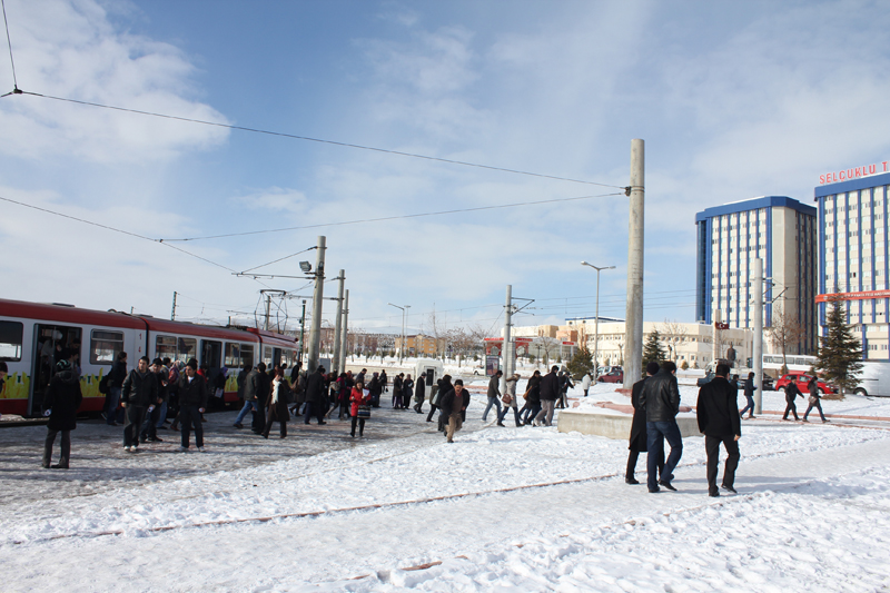 Konya Büyükşehir Belediyesi Toplu Ulaşım Dairesi, isminde bulunan “Toplu” ifadesini o kadar ciddiye almış olacak ki, yeterince toplu bulmadığı kampus içi tramvay seferlerini iptal etti. Aslında iptal etti kelimesi tam olarak doğru sayılmaz çünkü her dört tramvaydan biri yine kampus içine giriyor. Tramvay kampus içine girmesine giriyor ama termometrelerin sıfırın altında değerler gösterdiği şu günlerde okeye dördüncü bekler gibi 4. tramvayı beklemeyi göze alırsanız kampus içi ulaşımı sağlayabilirsiniz.