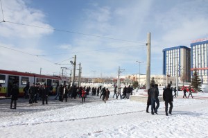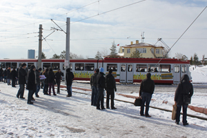 Aşağıdaki fotoğraflar 1 Şubat 2011 tarihinde çekildi. Üstteki kampus içine girmeyen bir tramvaydan inenleri ortadaki fotoğraf bir önceki tramvaydan inip kampus içine girecek tramvayı bekleyenleri, en alttaki fotoğraf tramvayın kampüs içine hizmet verebilmesi için gerekli doluluk durumunu gösteriyor.
