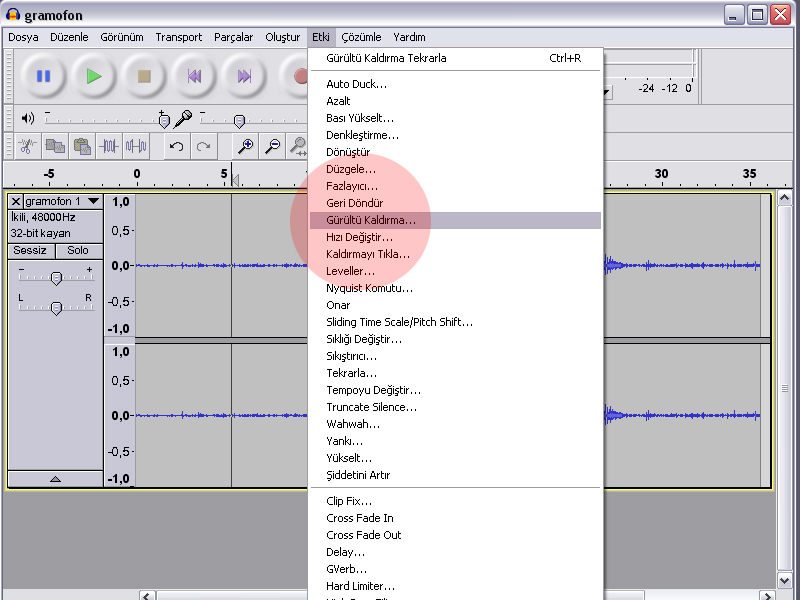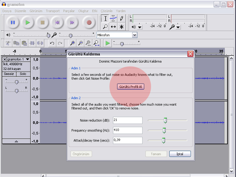 audacity de gürültü kaldırma menüsü aktif değil yani seçemiyorum lütfen bi yardımcı olurmusunuz