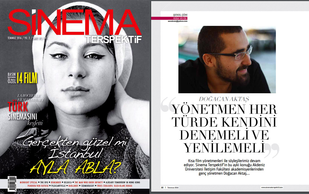 Kısa film yönetmenleri ile söyleşilerimiz devam ediyor. Kısa ve Öz’ün bu ay ki konuğu Doğacan Aktaş, başarılı yönetmenle yaptığım röportaj Sinema Terspektif temmuz sayısında…