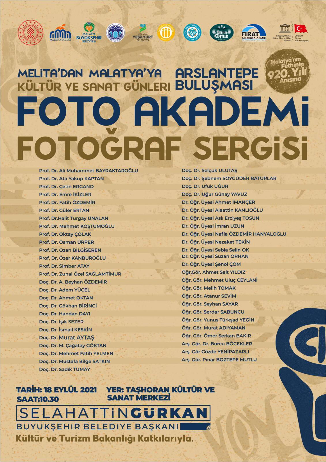 Malatya Kültür Sanat Günleri Arslantepe Buluşması” kapsamında 22 üniversiteden 52 akademisyen sanatçının katıldığı fotoğraf sergisi 18 Eylül Cumartesi günü Taşhoran Kültür ve Sanat Merkezi’nde düzenlenecek.