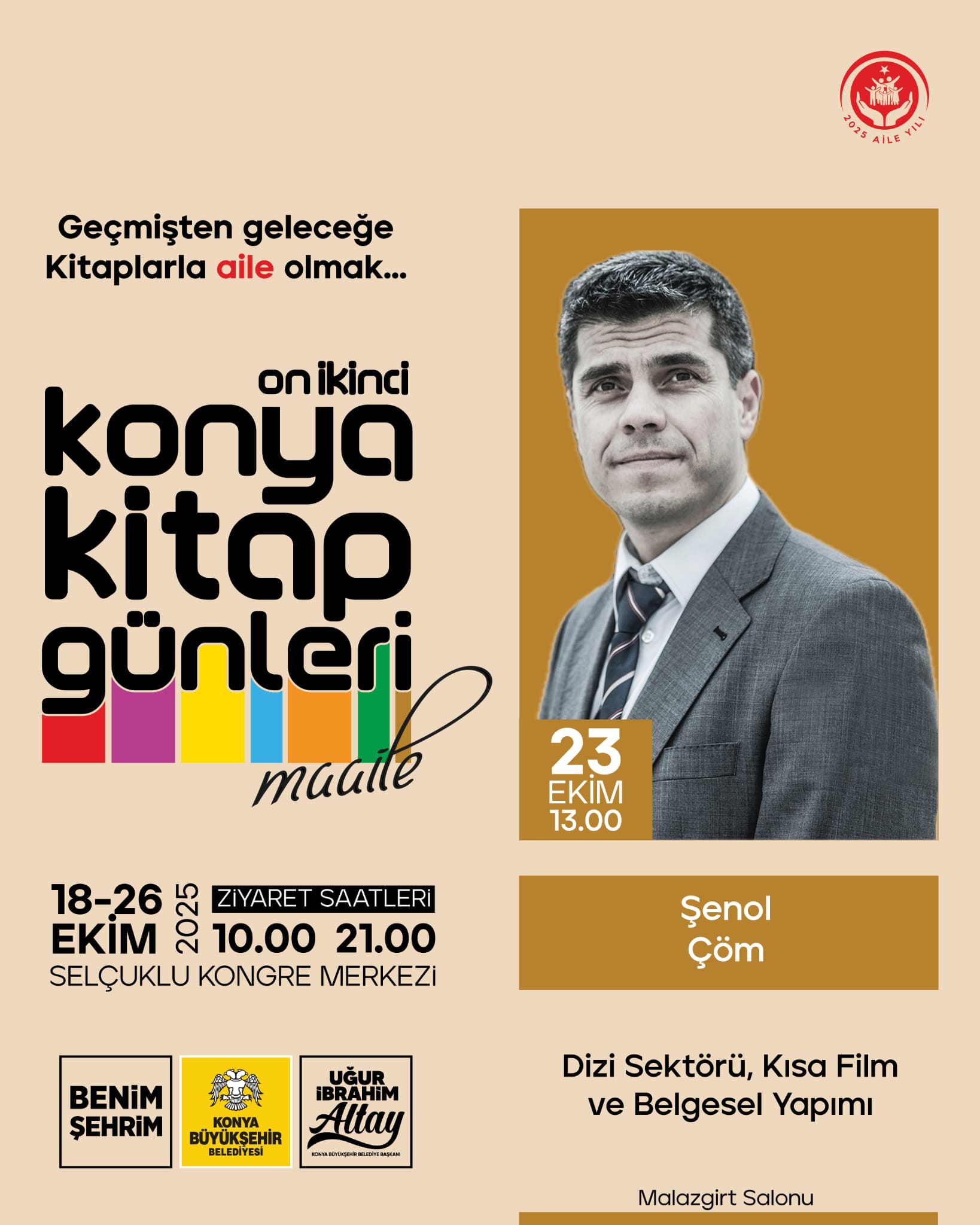 Bu yıl 12. si düzenlenecek olan Konya Kitap Günleri kapsamında 23. Ekim Perşembe Günü Saat 13.00 ‘de gerçekleşecek olan “Kısa Film ve Belgesel Yapımı” başlıklı söyleşiye zamanı olanları bekliyorum…