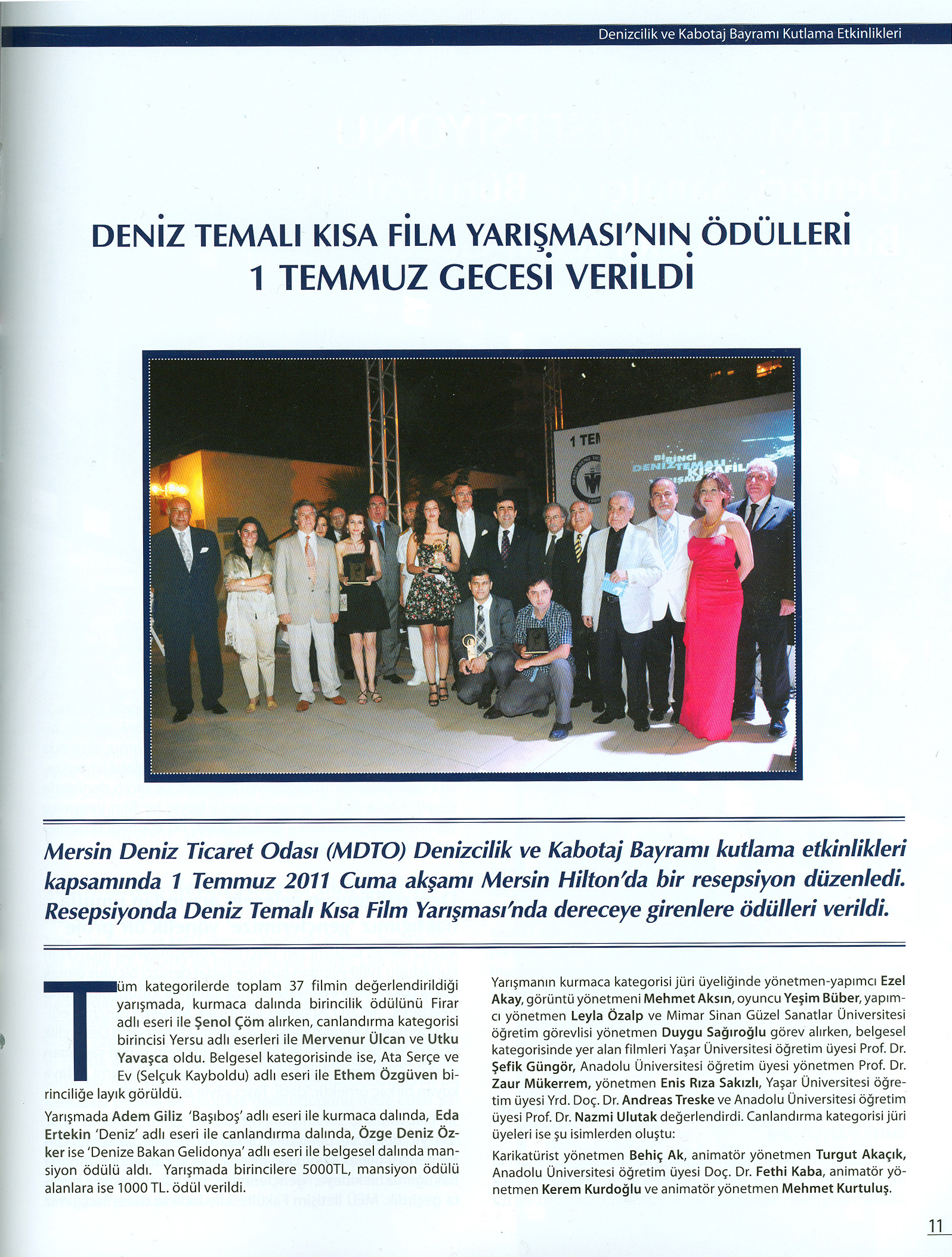 Deniz Temalı Kısa Film Yarışması 1. lik ödülü Ayrıntı (Dergi) (Dergi2) (haber7)