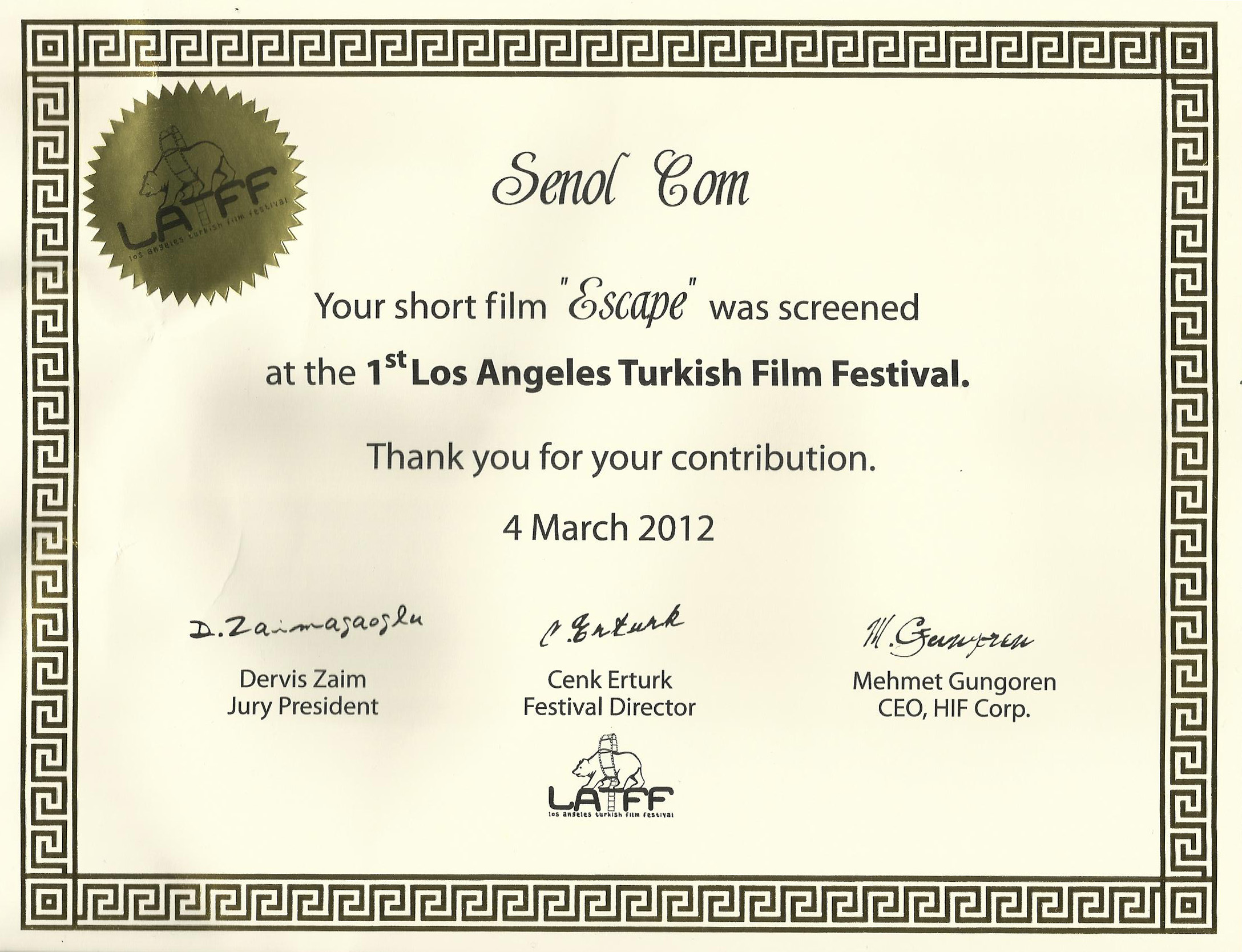 1.Los Angeles Türk Filmleri Festivali (Firar) (Katılım Belgesi) (Katalog)