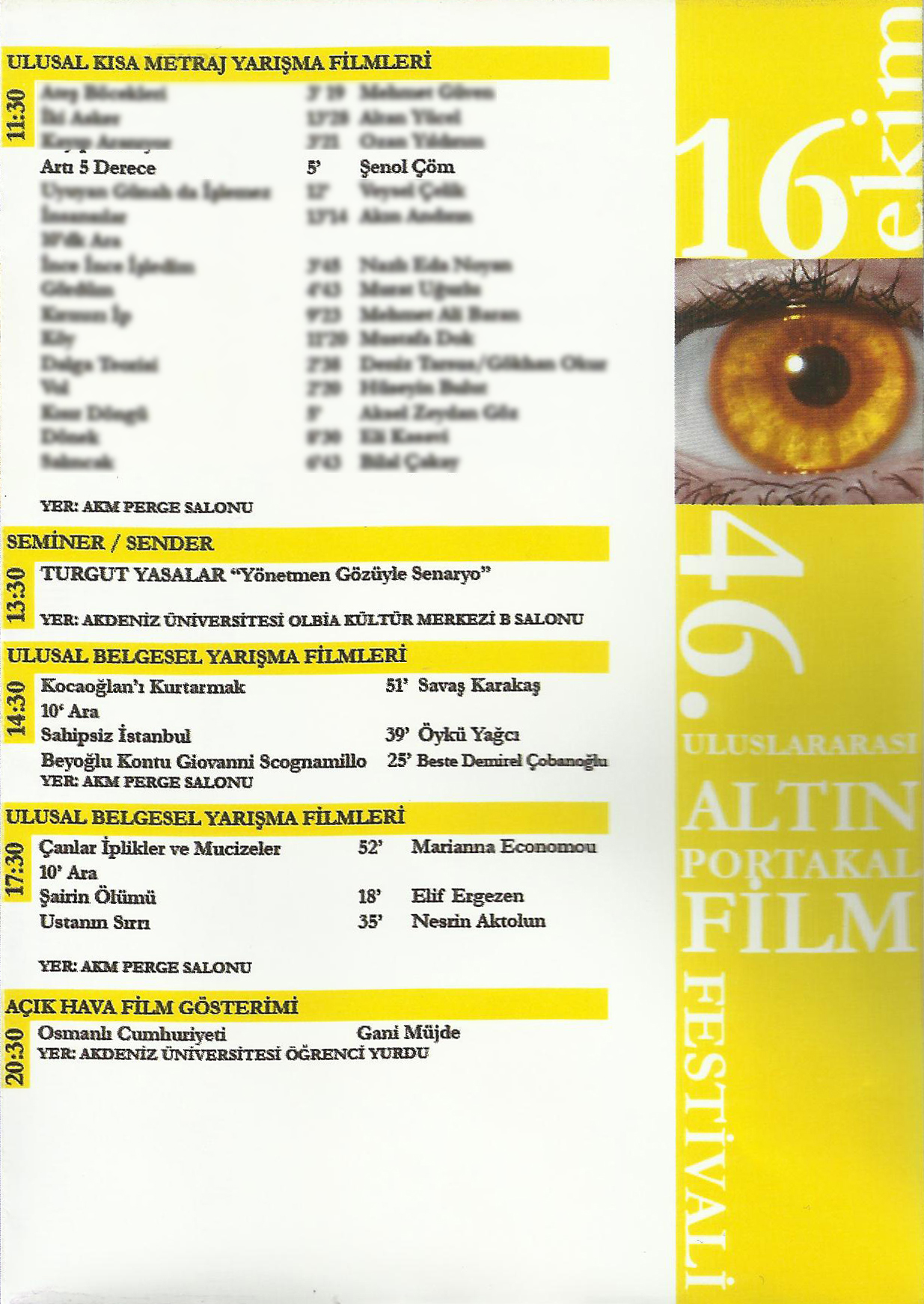 46. Altınportakal Film Festivali (+ 5 Derece) (Finalist Film) (Katalog) (Broşür)