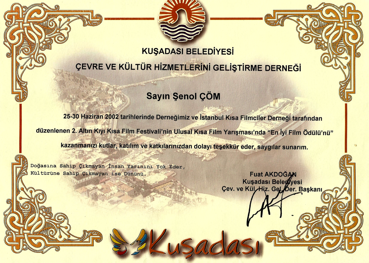 S.Ü. 4. Kısa-ca Film Festivali Alim Şerif Onaran Özel Ödülü ( Sıradan ) (Ödül ve Katılım Belgesi)