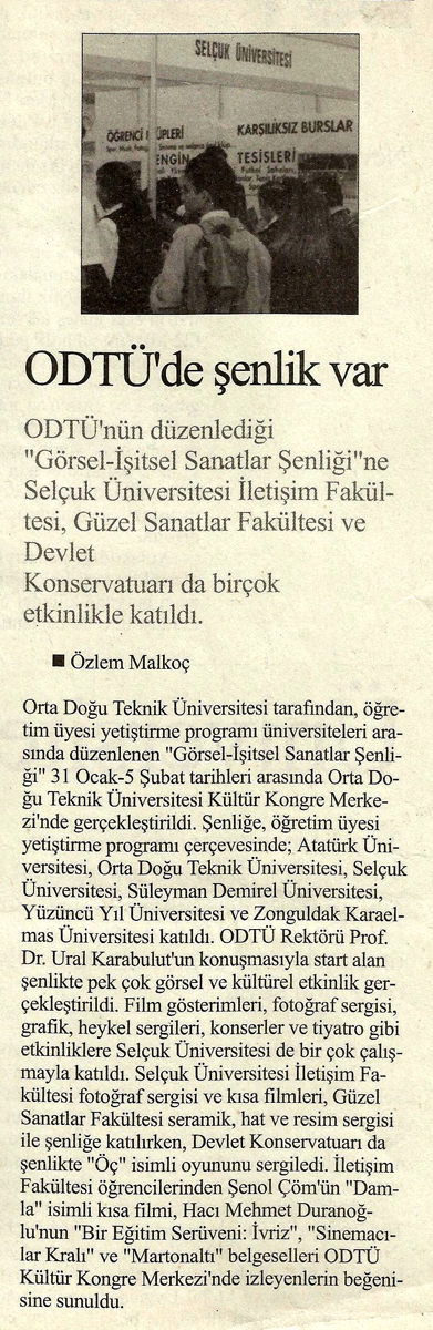 Odtü Görsel İşitsel Sanatlar Sergisi (Katılım Belgesi) (Gazete Küpür)