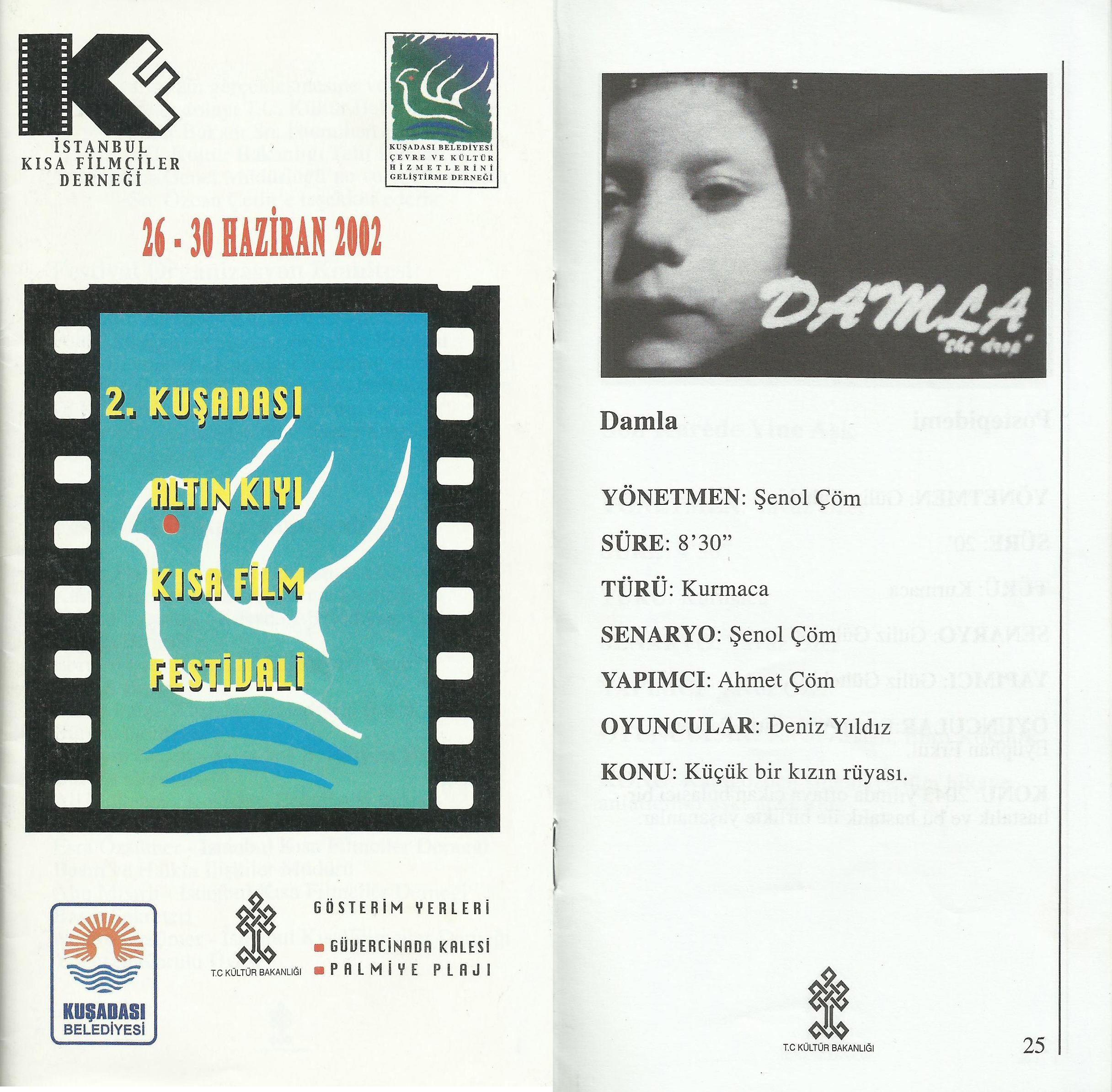 2. Kuşadası Belediyesi Altın Kıyı Film Festivali En İyi Film Ödülü ( Damla ) (Ödül Belgesi) (Katalog) (milliyet)