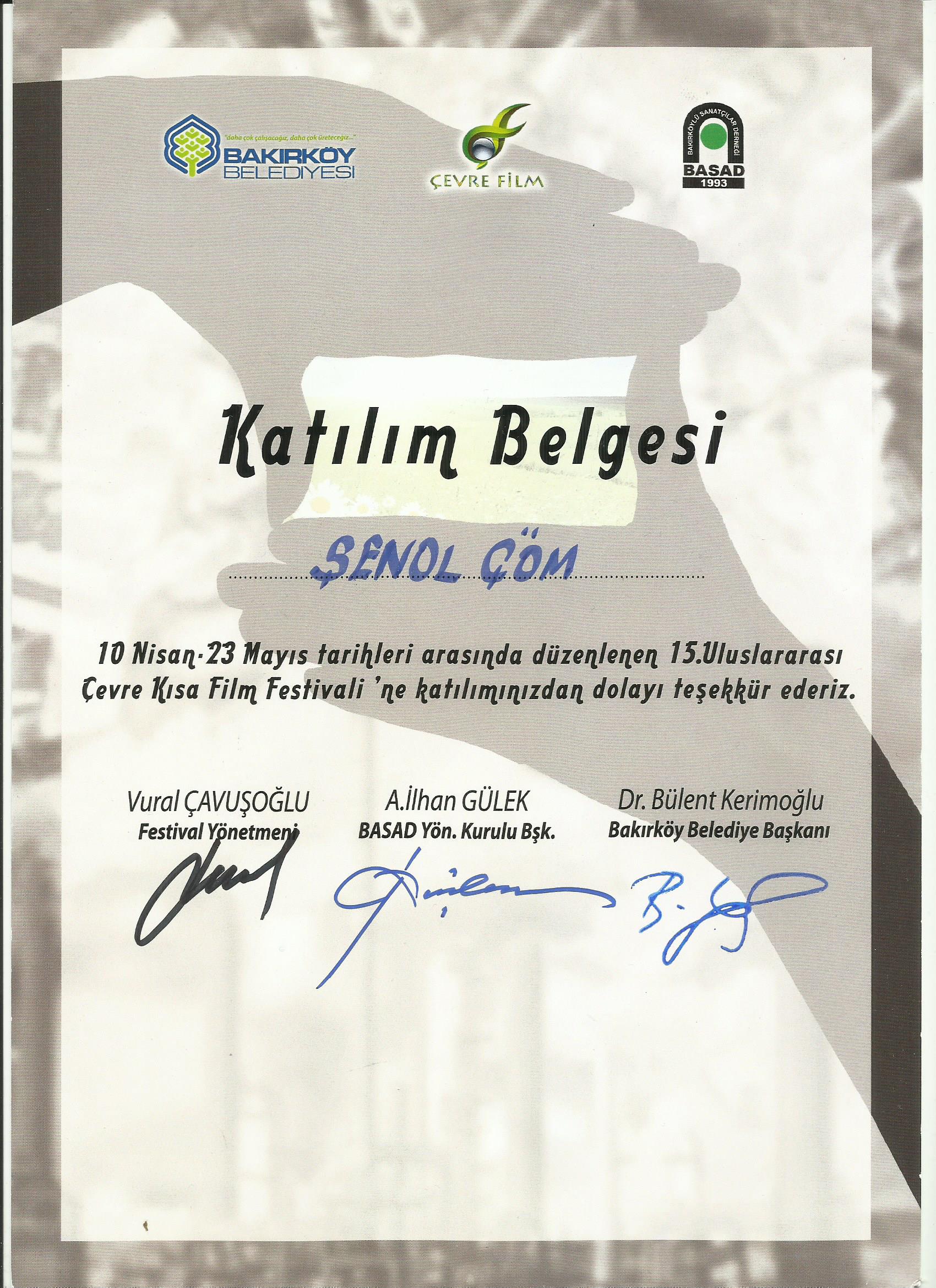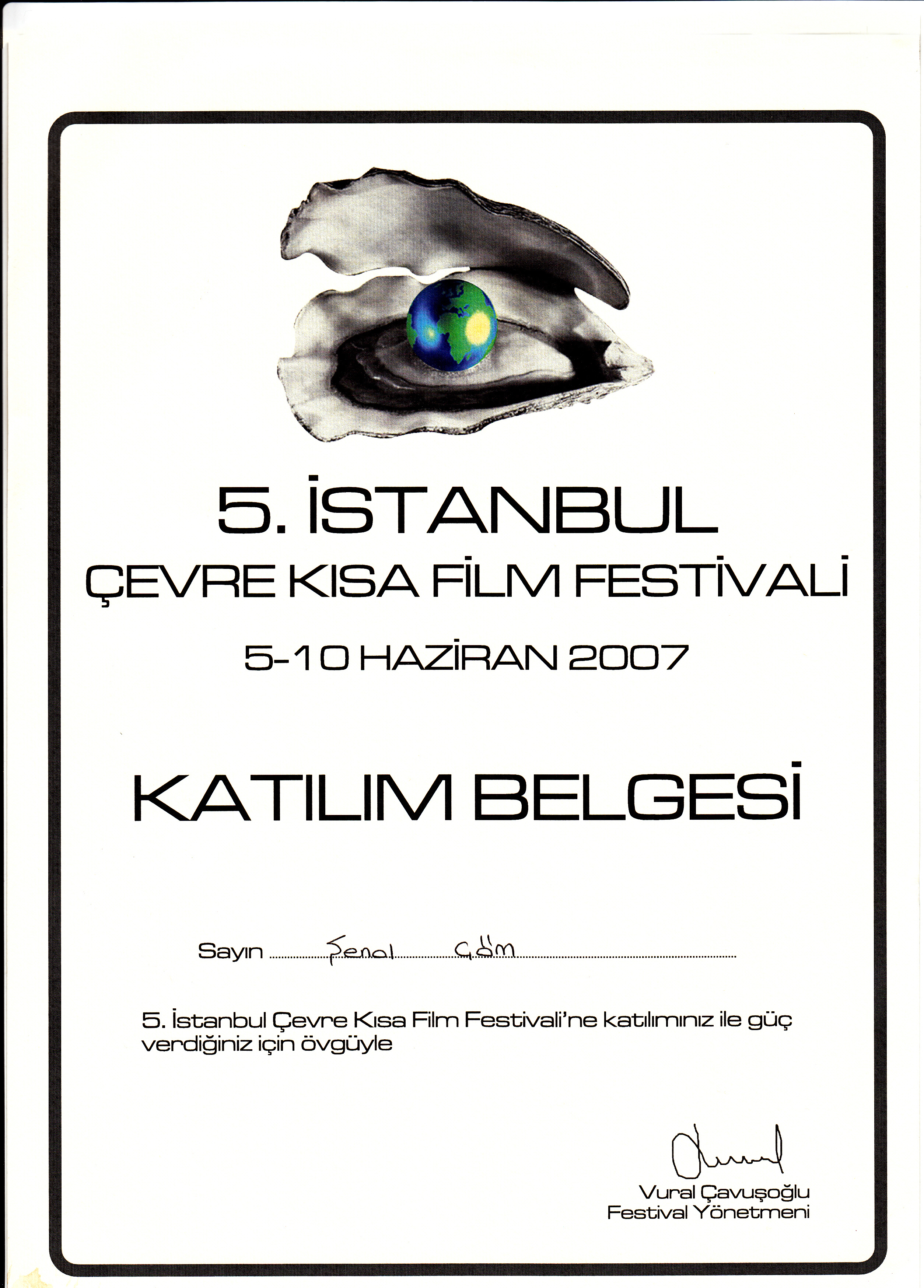 5. İstanbul Çevre Kısa Film Festivali 2. lik ödülü ( Fıkra ) (Katılım Belgesi)