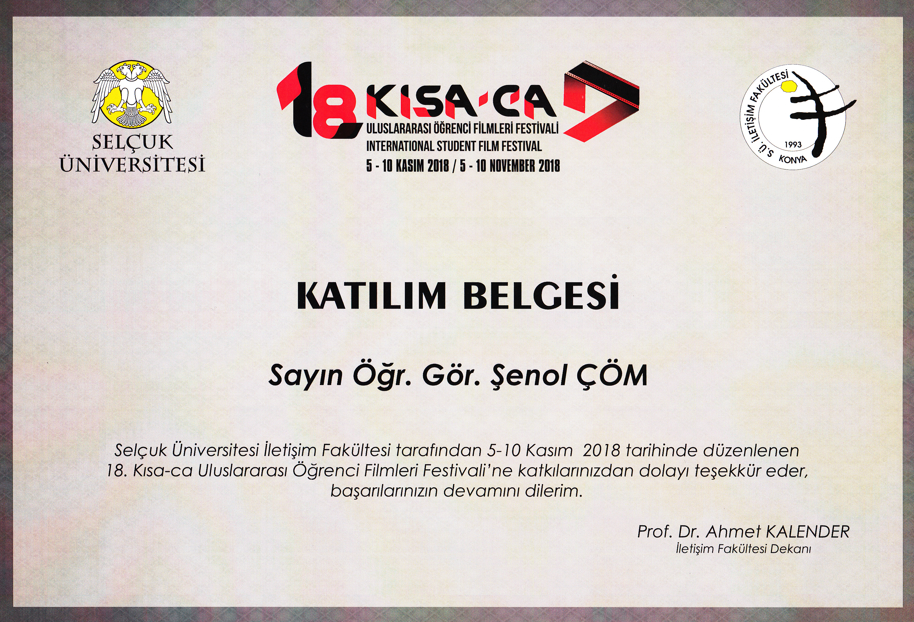 19. Kısa-Ca Film Festivali İzle (Katılım Belgesi)