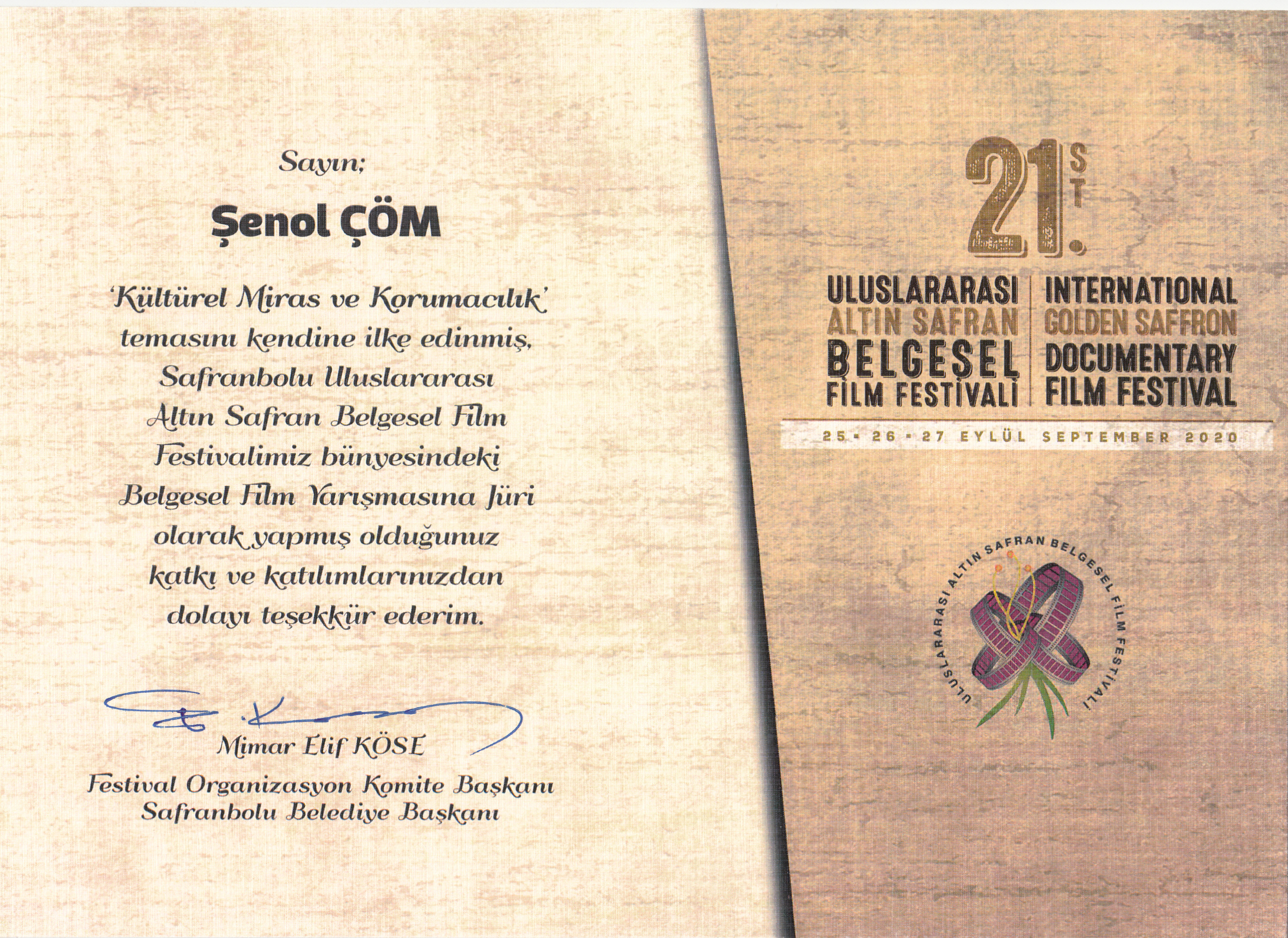 21. Altın Safran Belgesel Film Festivali Amatör Kategori Jüri Üyeliği (Katılım Belgesi)