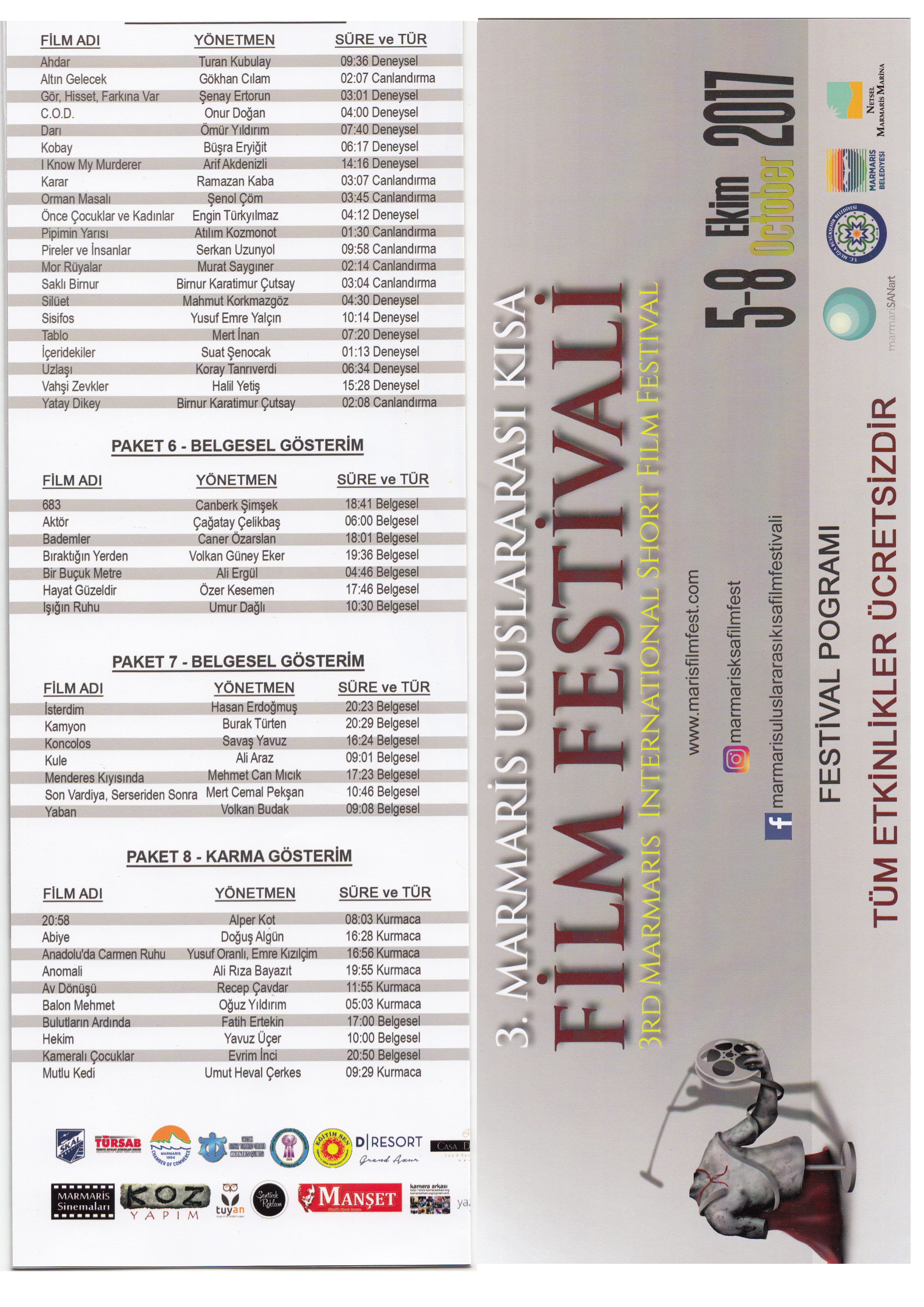 3. Uluslararası Marmaris Film Festivali (Orman Masalı) (Katılım Belgesi) (Katalog) (Teşekkür Belgesi)