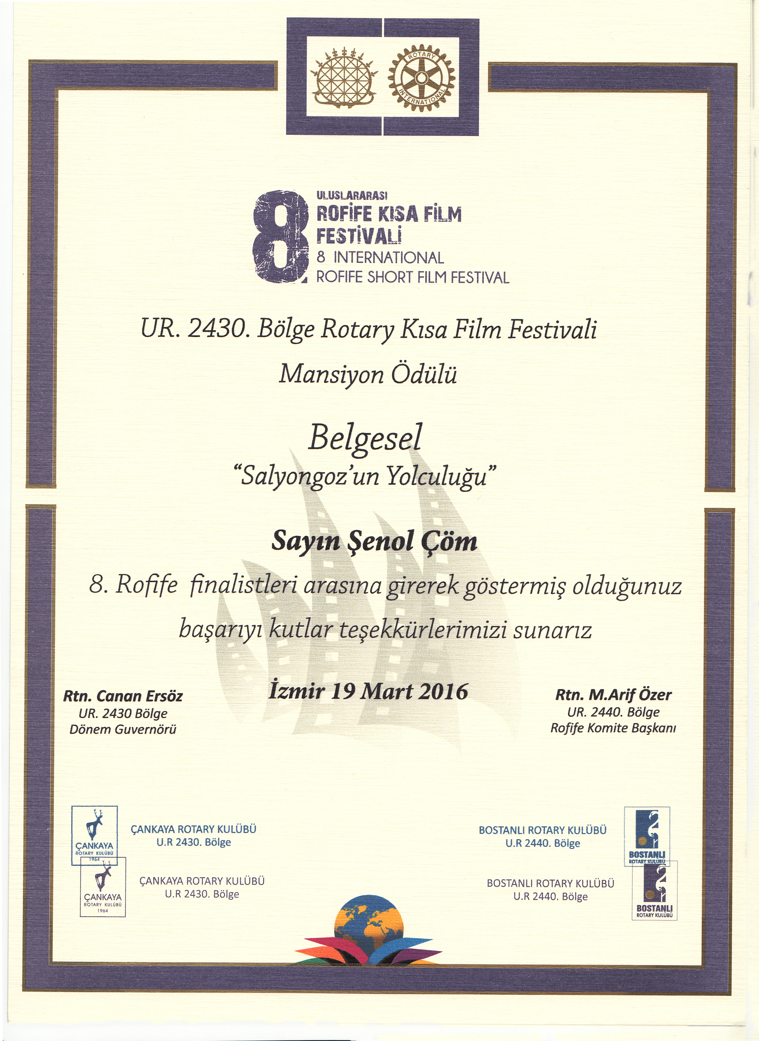 11. Uluslararası Rofife Film Festivali Belgesel 2. lik ödülü Ayrıntı