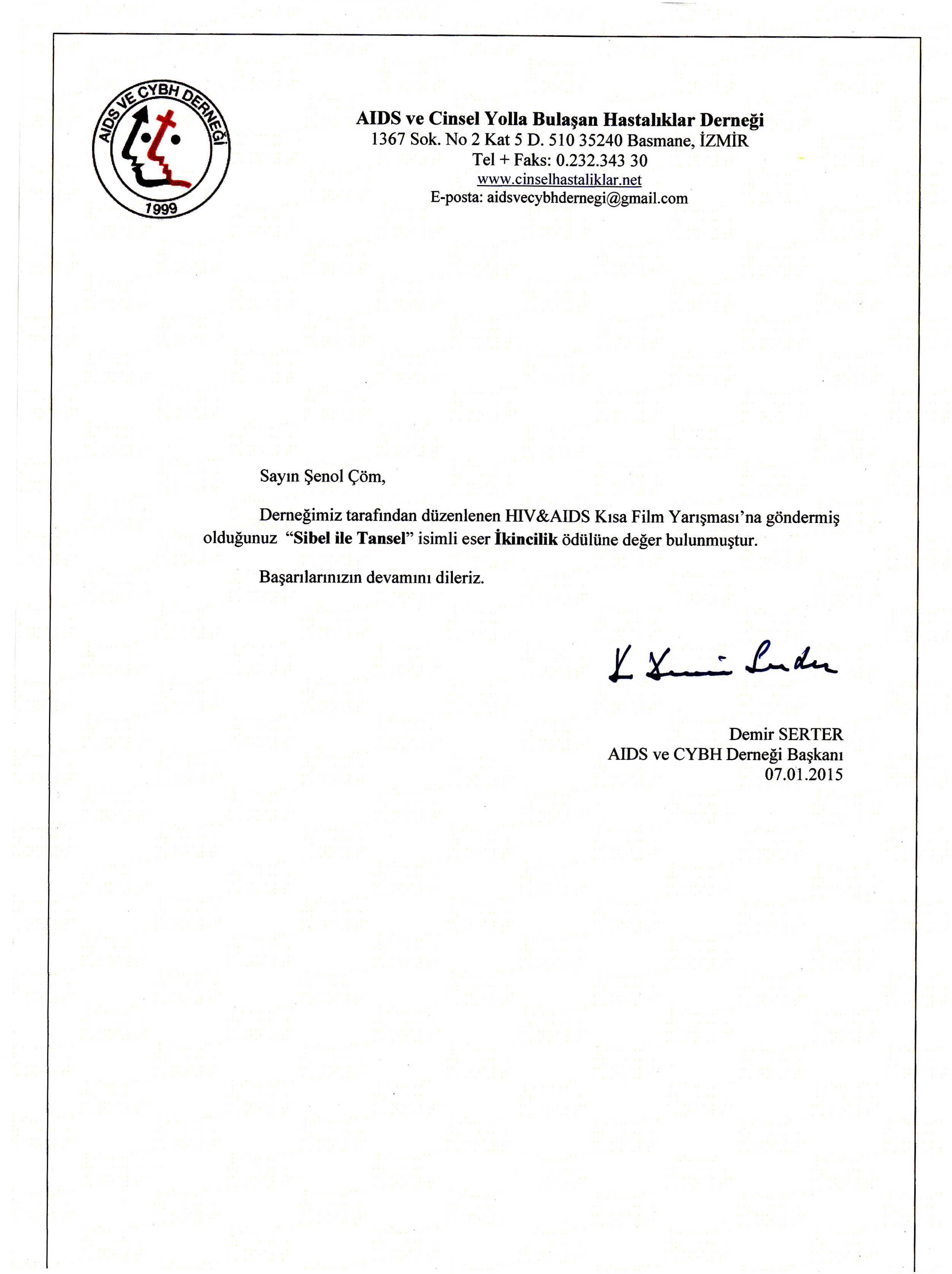 “Kadrajımda pozitif öyküler” 2. lik ödülü (Sibel ile Tansel) Ayrıntı (Ödül Belgesi) (ilksesgazetesi) (aidsvecybhderneği)
