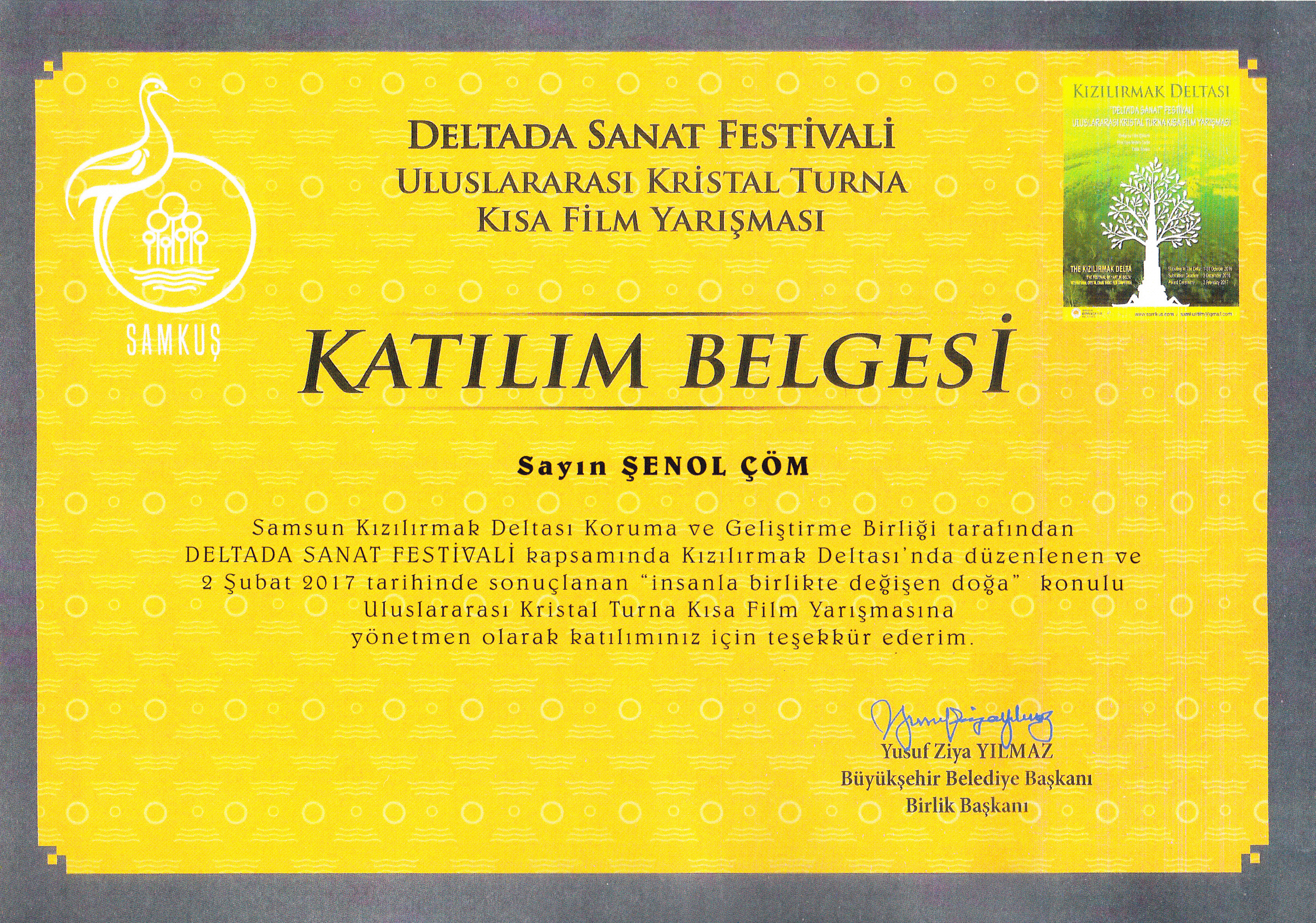 Deltada Sanat Festivali Uluslararası Kristal Turna Kısa Film Yarışması (Katılım Belgesi)