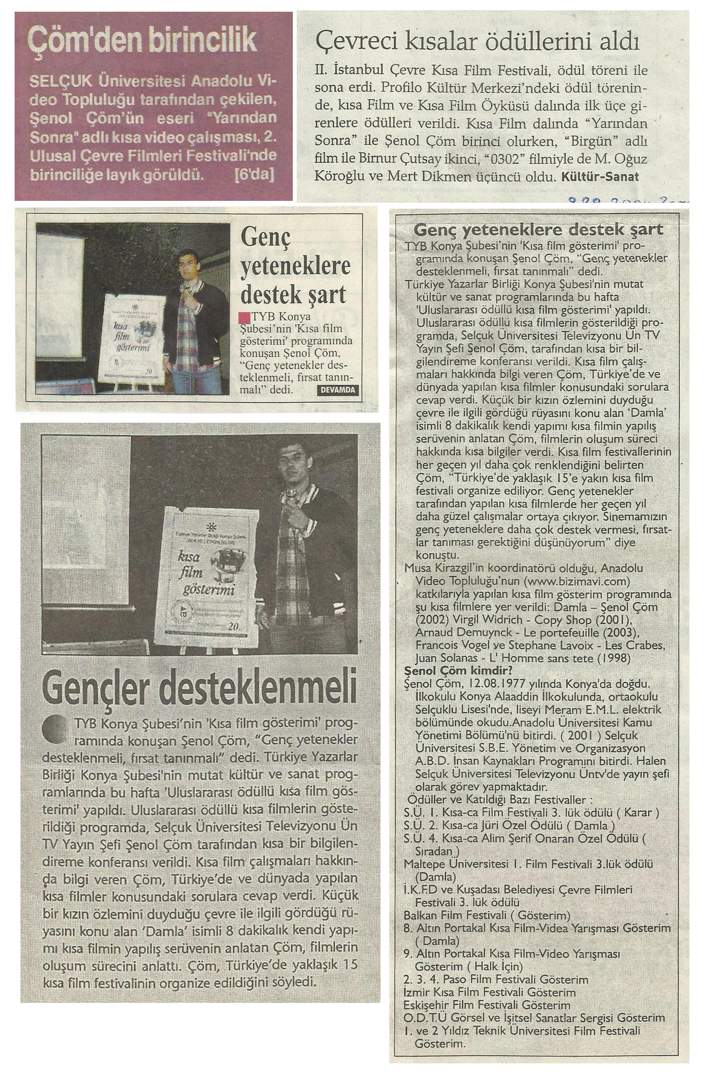 2. İstanbul Çevre Filmleri Festivali 1. lik ödülü ( Yarından Sonra ) (Gazete) (Katılım Belgesi)