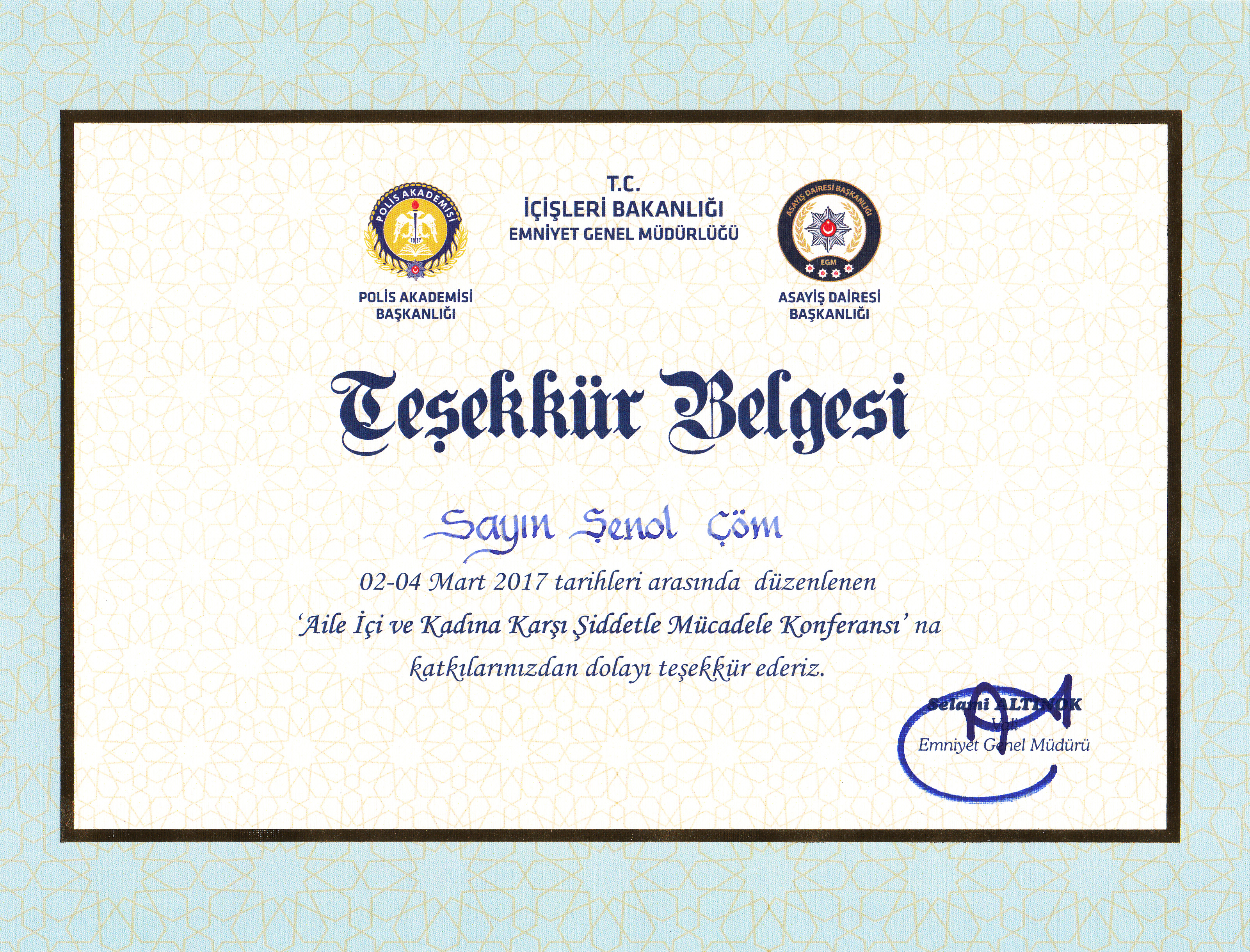 Emniyet Genel Müdürlüğü Aile İçi ve Kadına Karşı Şiddetle Mücadele Konferansı (Katalog) (Katılım Belgesi)