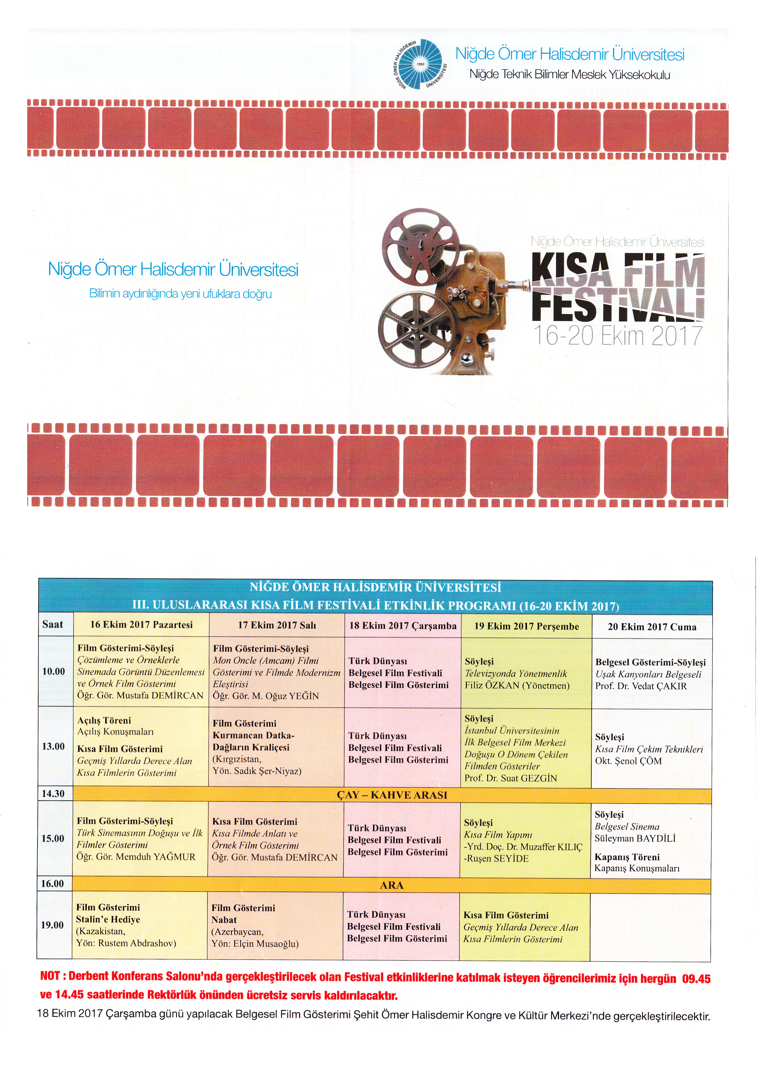 Niğde Ömer Halis Demir Üniversitesi 3. Uluslararası Kısa Film Festivali (Katalog)