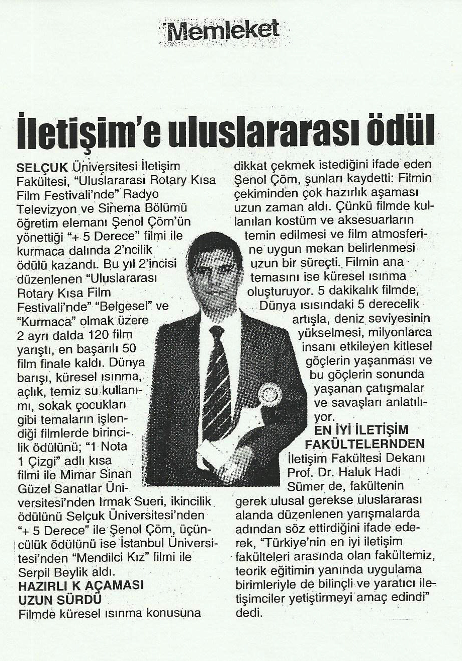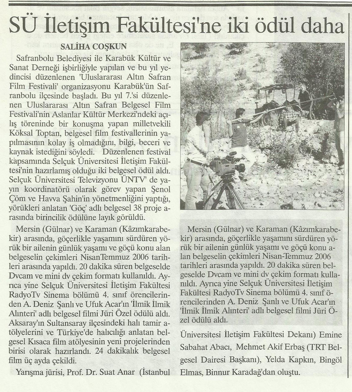SÜ İletişim Fakültesine İki Ödül Daha (Ekim 2006) (Selçuk İletişim Gazetesi)
