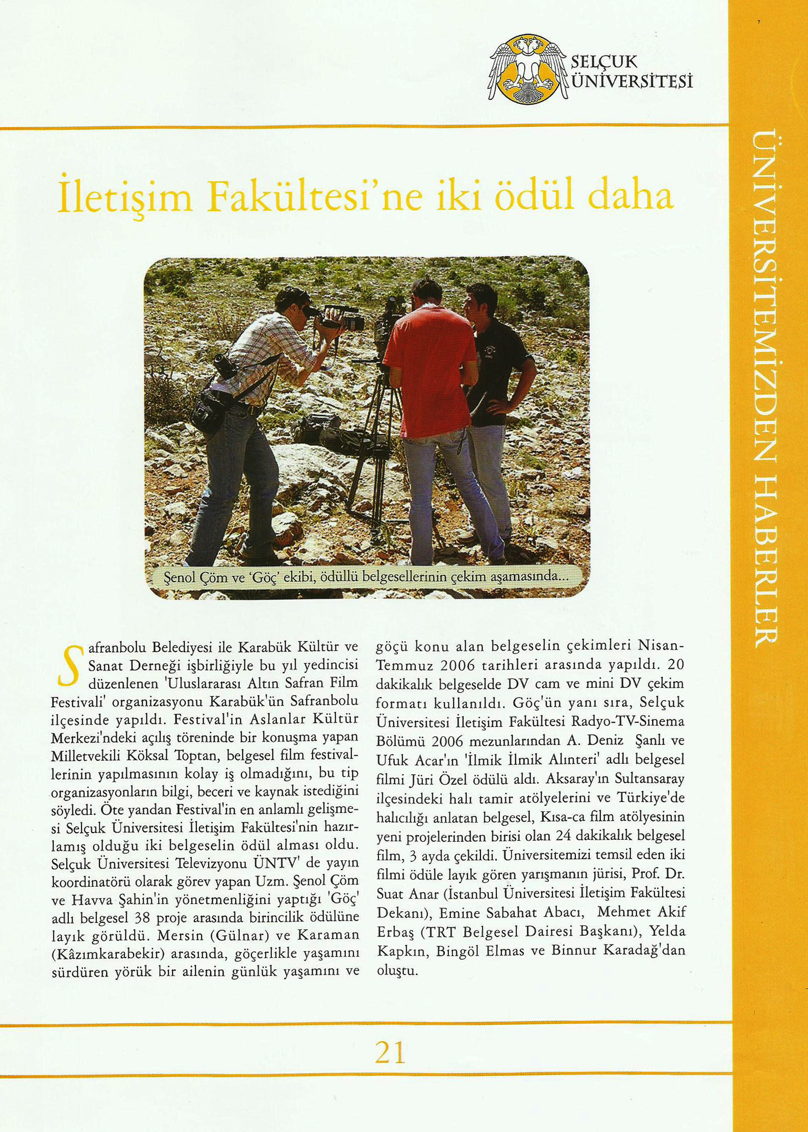 İletişim Fakültesine İki Ödül Daha (Ekim 2006) (Selçuk Bakış Dergisi)